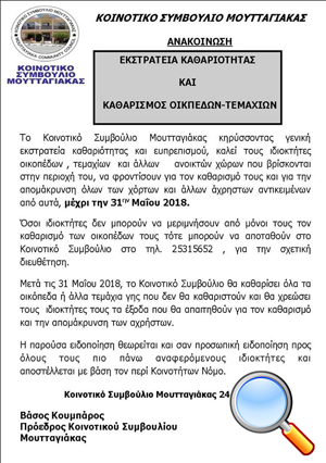 Εκστρατεία Καθαριότητας και Καθαρισμός Οικοπέδων, μέχρι 31.5.2018