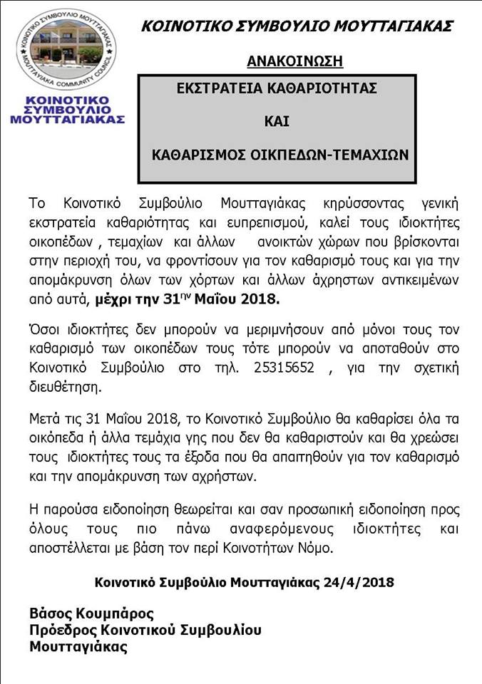 Εκστρατεία Καθαριότητας και Καθαρισμός Οικοπέδων, μέχρι 31.5.2018