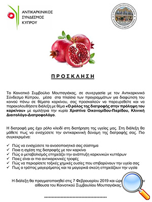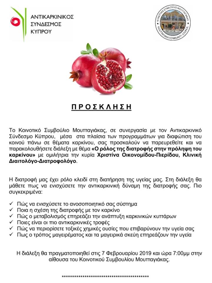 Διάλεξη με θέμα «Ο ρόλος της διατροφής στην πρόληψη του καρκίνου (7/2/2019)